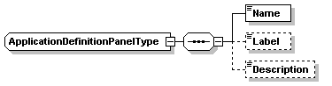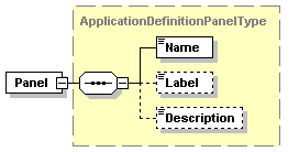 | source | <xs:complexType name="ApplicationDefinitionPanelType"> <xs:sequence> <xs:element name="Name" type="xs:string"/> <xs:element name="Label" type="xs:string" minOccurs="0"/> <xs:element name="Description" type="xs:string" minOccurs="0"/> </xs:sequence> </xs:complexType> |
