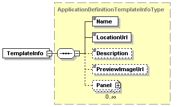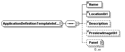 | source | <xs:complexType name="ApplicationDefinitionTemplateInfoType"> <xs:sequence> <xs:element name="Name" type="xs:string"/> <xs:element name="LocationUrl" type="xs:string"/> <xs:element name="Description" type="xs:string" minOccurs="0"/> <xs:element name="PreviewImageUrl" type="xs:string" minOccurs="0"/> <xs:element name="Panel" type="ApplicationDefinitionPanelType" minOccurs="0" maxOccurs="unbounded"/> </xs:sequence> </xs:complexType> |