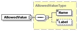 | source | <xs:complexType name="AllowedValueType"> <xs:sequence> <xs:element name="Name" type="xs:string"/> <xs:element name="Label" type="xs:string" minOccurs="0"/> </xs:sequence> </xs:complexType> |