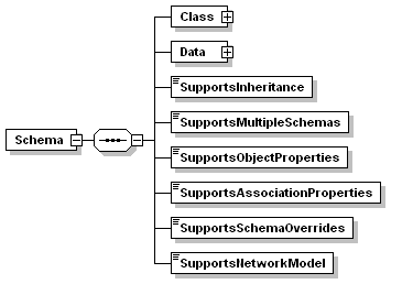 | source | <xs:element name="Schema" minOccurs="0"> <xs:complexType> <xs:sequence> <xs:element name="Class"> <xs:complexType> <xs:sequence> <xs:element name="Type" maxOccurs="unbounded"> <xs:annotation> <xs:documentation>Class or FeatureClass enum value here</xs:documentation> </xs:annotation> <xs:simpleType> <xs:restriction base="xs:string"> <xs:enumeration value="Class"/> <xs:enumeration value="FeatureClass"/> </xs:restriction> </xs:simpleType> </xs:element> </xs:sequence> </xs:complexType> </xs:element> <xs:element name="Data"> <xs:complexType> <xs:sequence> <xs:element name="Type" maxOccurs="unbounded"> <xs:annotation> <xs:documentation>Enum of data types Boolean, Byte, DateTime, Decimal, Double, Int16, Int32, Int64, Single, String, BLOB, CLOB, UniqueID </xs:documentation> </xs:annotation> <xs:simpleType> <xs:restriction base="xs:string"> <xs:enumeration value="Boolean"/> <xs:enumeration value="Byte"/> <xs:enumeration value="DateTime"/> <xs:enumeration value="Decimal"/> <xs:enumeration value="Double"/> <xs:enumeration value="Int16"/> <xs:enumeration value="Int32"/> <xs:enumeration value="Int64"/> <xs:enumeration value="Single"/> <xs:enumeration value="String"/> <xs:enumeration value="BLOB"/> <xs:enumeration value="CLOB"/> <xs:enumeration value="UniqueID"/> </xs:restriction> </xs:simpleType> </xs:element> </xs:sequence> </xs:complexType> </xs:element> <xs:element name="SupportsInheritance" type="xs:boolean"/> <xs:element name="SupportsMultipleSchemas" type="xs:boolean"/> <xs:element name="SupportsObjectProperties" type="xs:boolean"/> <xs:element name="SupportsAssociationProperties" type="xs:boolean"/> <xs:element name="SupportsSchemaOverrides" type="xs:boolean"/> <xs:element name="SupportsNetworkModel" type="xs:boolean"/> </xs:sequence> </xs:complexType> </xs:element> |