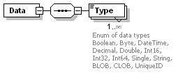 | source | <xs:element name="Data"> <xs:complexType> <xs:sequence> <xs:element name="Type" maxOccurs="unbounded"> <xs:annotation> <xs:documentation>Enum of data types Boolean, Byte, DateTime, Decimal, Double, Int16, Int32, Int64, Single, String, BLOB, CLOB, UniqueID </xs:documentation> </xs:annotation> <xs:simpleType> <xs:restriction base="xs:string"> <xs:enumeration value="Boolean"/> <xs:enumeration value="Byte"/> <xs:enumeration value="DateTime"/> <xs:enumeration value="Decimal"/> <xs:enumeration value="Double"/> <xs:enumeration value="Int16"/> <xs:enumeration value="Int32"/> <xs:enumeration value="Int64"/> <xs:enumeration value="Single"/> <xs:enumeration value="String"/> <xs:enumeration value="BLOB"/> <xs:enumeration value="CLOB"/> <xs:enumeration value="UniqueID"/> </xs:restriction> </xs:simpleType> </xs:element> </xs:sequence> </xs:complexType> </xs:element> |
