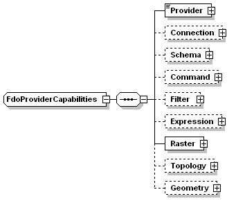 | source | <xs:complexType name="FdoProviderCapabilities"> <xs:sequence> <xs:element name="Provider"> <xs:complexType> <xs:simpleContent> <xs:extension base="xs:string"> <xs:attribute name="Name" type="xs:string" use="required"/> </xs:extension> </xs:simpleContent> </xs:complexType> </xs:element> <xs:element name="Connection" minOccurs="0"> <xs:complexType> <xs:sequence> <xs:element name="ThreadCapability"> <xs:simpleType> <xs:restriction base="xs:string"> <xs:enumeration value="SingleThreaded"/> <xs:enumeration value="PerConnectionThreaded"/> <xs:enumeration value="PerCommandThreaded"/> <xs:enumeration value="MultiThreaded"/> </xs:restriction> </xs:simpleType> </xs:element> <xs:element name="SpatialContextExtent"> <xs:annotation> <xs:documentation>Static or Dynamic. Could be enumeration here.</xs:documentation> </xs:annotation> <xs:complexType> <xs:sequence> <xs:element name="Type" maxOccurs="unbounded"> <xs:simpleType> <xs:restriction base="xs:string"> <xs:enumeration value="Static"/> <xs:enumeration value="Dynamic"/> </xs:restriction> </xs:simpleType> </xs:element> </xs:sequence> </xs:complexType> </xs:element> <xs:element name="SupportsLocking" type="xs:boolean"/> <xs:element name="SupportsTimeout" type="xs:boolean"/> <xs:element name="SupportsTransactions" type="xs:boolean"/> <xs:element name="SupportsLongTransactions" type="xs:boolean"/> <xs:element name="SupportsSQL" type="xs:boolean"/> <xs:element name="SupportsConfiguration" type="xs:boolean"/> </xs:sequence> </xs:complexType> </xs:element> <xs:element name="Schema" minOccurs="0"> <xs:complexType> <xs:sequence> <xs:element name="Class"> <xs:complexType> <xs:sequence> <xs:element name="Type" maxOccurs="unbounded"> <xs:annotation> <xs:documentation>Class or FeatureClass enum value here</xs:documentation> </xs:annotation> <xs:simpleType> <xs:restriction base="xs:string"> <xs:enumeration value="Class"/> <xs:enumeration value="FeatureClass"/> </xs:restriction> </xs:simpleType> </xs:element> </xs:sequence> </xs:complexType> </xs:element> <xs:element name="Data"> <xs:complexType> <xs:sequence> <xs:element name="Type" maxOccurs="unbounded"> <xs:annotation> <xs:documentation>Enum of data types Boolean, Byte, DateTime, Decimal, Double, Int16, Int32, Int64, Single, String, BLOB, CLOB, UniqueID </xs:documentation> </xs:annotation> <xs:simpleType> <xs:restriction base="xs:string"> <xs:enumeration value="Boolean"/> <xs:enumeration value="Byte"/> <xs:enumeration value="DateTime"/> <xs:enumeration value="Decimal"/> <xs:enumeration value="Double"/> <xs:enumeration value="Int16"/> <xs:enumeration value="Int32"/> <xs:enumeration value="Int64"/> <xs:enumeration value="Single"/> <xs:enumeration value="String"/> <xs:enumeration value="BLOB"/> <xs:enumeration value="CLOB"/> <xs:enumeration value="UniqueID"/> </xs:restriction> </xs:simpleType> </xs:element> </xs:sequence> </xs:complexType> </xs:element> <xs:element name="SupportsInheritance" type="xs:boolean"/> <xs:element name="SupportsMultipleSchemas" type="xs:boolean"/> <xs:element name="SupportsObjectProperties" type="xs:boolean"/> <xs:element name="SupportsAssociationProperties" type="xs:boolean"/> <xs:element name="SupportsSchemaOverrides" type="xs:boolean"/> <xs:element name="SupportsNetworkModel" type="xs:boolean"/> </xs:sequence> </xs:complexType> </xs:element> <xs:element name="Command" minOccurs="0"> <xs:complexType> <xs:sequence> <xs:element name="SupportedCommands"> <xs:complexType> <xs:sequence> <xs:element name="Name" maxOccurs="unbounded"> <xs:annotation> <xs:documentation>Following is the possible list of commands Select,Insert,Delete,Update,DescribeSchema,ApplySchema,DestroySchema,ActivateSpatialContext,CreateSpatialContext,DestroySpatialContext,GetSpatialContexts, CreateMeasureUnit,DestroyMeasureUnit,GetMeasureUnits,SQLCommand,AcquireLock,GetLockInfo,GetLockedObjects,GetLockOwners,ReleaseLock, ActivateLongTransaction,CommitLongTransaction,CreateLongTransaction,GetLongTransactions,FreezeLongTransaction,RollbackLongTransaction, ActivateLongTransactionCheckpoint,CreateLongTransactionCheckpoint,GetLongTransactionCheckpoints,RollbackLongTransactionCheckpoint, ChangeLongTransactionPrivileges,GetLongTransactionPrivileges,ChangeLongTransactionSet,GetLongTransactionsInSet,FirstProviderCommand </xs:documentation> </xs:annotation> <xs:simpleType> <xs:restriction base="xs:string"> <xs:enumeration value="Select"/> <xs:enumeration value="Insert"/> <xs:enumeration value="Delete"/> <xs:enumeration value="Update"/> <xs:enumeration value="DescribeSchema"/> <xs:enumeration value="ApplySchema"/> <xs:enumeration value="DestroySchema"/> <xs:enumeration value="ActivateSpatialContext"/> <xs:enumeration value="CreateSpatialContext"/> <xs:enumeration value="DestroySpatialContext"/> <xs:enumeration value="GetSpatialContexts"/> <xs:enumeration value="CreateMeasureUnit"/> <xs:enumeration value="DestroyMeasureUnit"/> <xs:enumeration value="GetMeasureUnits"/> <xs:enumeration value="SQLCommand"/> <xs:enumeration value="AcquireLock"/> <xs:enumeration value="GetLockInfo"/> <xs:enumeration value="GetLockedObjects"/> <xs:enumeration value="GetLockOwners"/> <xs:enumeration value="ReleaseLock"/> <xs:enumeration value="ActivateLongTransaction"/> <xs:enumeration value="CommitLongTransaction"/> <xs:enumeration value="CreateLongTransaction"/> <xs:enumeration value="GetLongTransactions"/> <xs:enumeration value="FreezeLongTransaction"/> <xs:enumeration value="RollbackLongTransaction"/> <xs:enumeration value="ActivateLongTransactionCheckpoint"/> <xs:enumeration value="CreateLongTransactionCheckpoint"/> <xs:enumeration value="GetLongTransactionCheckpoints"/> <xs:enumeration value="RollbackLongTransactionCheckpoint"/> <xs:enumeration value="ChangeLongTransactionPrivileges"/> <xs:enumeration value="GetLongTransactionPrivileges"/> <xs:enumeration value="ChangeLongTransactionSet"/> <xs:enumeration value="GetLongTransactionsInSet"/> <xs:enumeration value="FirstProviderCommand"/> <xs:enumeration value="DeactivateLongTransaction"/> </x