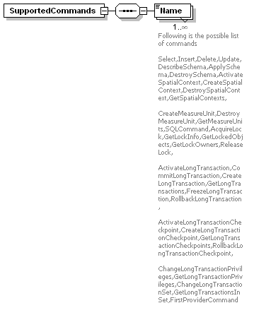 | source | <xs:element name="SupportedCommands"> <xs:complexType> <xs:sequence> <xs:element name="Name" maxOccurs="unbounded"> <xs:annotation> <xs:documentation>Following is the possible list of commands Select,Insert,Delete,Update,DescribeSchema,ApplySchema,DestroySchema,ActivateSpatialContext,CreateSpatialContext,DestroySpatialContext,GetSpatialContexts, CreateMeasureUnit,DestroyMeasureUnit,GetMeasureUnits,SQLCommand,AcquireLock,GetLockInfo,GetLockedObjects,GetLockOwners,ReleaseLock, ActivateLongTransaction,CommitLongTransaction,CreateLongTransaction,GetLongTransactions,FreezeLongTransaction,RollbackLongTransaction, ActivateLongTransactionCheckpoint,CreateLongTransactionCheckpoint,GetLongTransactionCheckpoints,RollbackLongTransactionCheckpoint, ChangeLongTransactionPrivileges,GetLongTransactionPrivileges,ChangeLongTransactionSet,GetLongTransactionsInSet,FirstProviderCommand </xs:documentation> </xs:annotation> <xs:simpleType> <xs:restriction base="xs:string"> <xs:enumeration value="Select"/> <xs:enumeration value="Insert"/> <xs:enumeration value="Delete"/> <xs:enumeration value="Update"/> <xs:enumeration value="DescribeSchema"/> <xs:enumeration value="ApplySchema"/> <xs:enumeration value="DestroySchema"/> <xs:enumeration value="ActivateSpatialContext"/> <xs:enumeration value="CreateSpatialContext"/> <xs:enumeration value="DestroySpatialContext"/> <xs:enumeration value="GetSpatialContexts"/> <xs:enumeration value="CreateMeasureUnit"/> <xs:enumeration value="DestroyMeasureUnit"/> <xs:enumeration value="GetMeasureUnits"/> <xs:enumeration value="SQLCommand"/> <xs:enumeration value="AcquireLock"/> <xs:enumeration value="GetLockInfo"/> <xs:enumeration value="GetLockedObjects"/> <xs:enumeration value="GetLockOwners"/> <xs:enumeration value="ReleaseLock"/> <xs:enumeration value="ActivateLongTransaction"/> <xs:enumeration value="CommitLongTransaction"/> <xs:enumeration value="CreateLongTransaction"/> <xs:enumeration value="GetLongTransactions"/> <xs:enumeration value="FreezeLongTransaction"/> <xs:enumeration value="RollbackLongTransaction"/> <xs:enumeration value="ActivateLongTransactionCheckpoint"/> <xs:enumeration value="CreateLongTransactionCheckpoint"/> <xs:enumeration value="GetLongTransactionCheckpoints"/> <xs:enumeration value="RollbackLongTransactionCheckpoint"/> <xs:enumeration value="ChangeLongTransactionPrivileges"/> <xs:enumeration value="GetLongTransactionPrivileges"/> <xs:enumeration value="ChangeLongTransactionSet"/> <xs:enumeration value="GetLongTransactionsInSet"/> <xs:enumeration value="FirstProviderCommand"/> <xs:enumeration value="DeactivateLongTransaction"/> </xs:restriction> </xs:simpleType> </xs:element> </xs:sequence> </xs:complexType> </xs:element> |