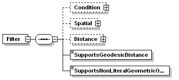 | source | <xs:element name="Filter" minOccurs="0"> <xs:complexType> <xs:sequence> <xs:element name="Condition" minOccurs="0"> <xs:complexType> <xs:sequence> <xs:element name="Type" maxOccurs="unbounded"> <xs:annotation> <xs:documentation>List of ConditionType is as follows: Comparison,Like,In,Null,Spatial,Distance</xs:documentation> </xs:annotation> <xs:simpleType> <xs:restriction base="xs:string"> <xs:enumeration value="Comparison"/> <xs:enumeration value="Like"/> <xs:enumeration value="In"/> <xs:enumeration value="Null"/> <xs:enumeration value="Spatial"/> <xs:enumeration value="Distance"/> </xs:restriction> </xs:simpleType> </xs:element> </xs:sequence> </xs:complexType> </xs:element> <xs:element name="Spatial" minOccurs="0"> <xs:complexType> <xs:sequence> <xs:element name="Operation" maxOccurs="unbounded"> <xs:annotation> <xs:documentation>List of spatial operations : Contains,Crosses, Disjoint,Equals, Intersects,Overlaps,Touches,Within, CoveredBy,Inside</xs:documentation> </xs:annotation> <xs:simpleType> <xs:restriction base="xs:string"> <xs:enumeration value="Contains"/> <xs:enumeration value="Crosses"/> <xs:enumeration value="Disjoint"/> <xs:enumeration value="Equals"/> <xs:enumeration value="Intersects"/> <xs:enumeration value="Overlaps"/> <xs:enumeration value="Touches"/> <xs:enumeration value="Within"/> <xs:enumeration value="CoveredBy"/> <xs:enumeration value="Inside"/> <xs:enumeration value="EnvelopeIntersects"/> </xs:restriction> </xs:simpleType> </xs:element> </xs:sequence> </xs:complexType> </xs:element> <xs:element name="Distance" minOccurs="0"> <xs:complexType> <xs:sequence> <xs:element name="Operation" maxOccurs="unbounded"> <xs:annotation> <xs:documentation>List of distance operations : Beyond, Within</xs:documentation> </xs:annotation> <xs:simpleType> <xs:restriction base="xs:string"> <xs:enumeration value="Beyond"/> <xs:enumeration value="Within"/> </xs:restriction> </xs:simpleType> </xs:element> </xs:sequence> </xs:complexType> </xs:element> <xs:element name="SupportsGeodesicDistance" type="xs:boolean"/> <xs:element name="SupportsNonLiteralGeometricOperations" type="xs:boolean"/> </xs:sequence> </xs:complexType> </xs:element> |