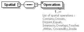 | source | <xs:element name="Spatial" minOccurs="0"> <xs:complexType> <xs:sequence> <xs:element name="Operation" maxOccurs="unbounded"> <xs:annotation> <xs:documentation>List of spatial operations : Contains,Crosses, Disjoint,Equals, Intersects,Overlaps,Touches,Within, CoveredBy,Inside</xs:documentation> </xs:annotation> <xs:simpleType> <xs:restriction base="xs:string"> <xs:enumeration value="Contains"/> <xs:enumeration value="Crosses"/> <xs:enumeration value="Disjoint"/> <xs:enumeration value="Equals"/> <xs:enumeration value="Intersects"/> <xs:enumeration value="Overlaps"/> <xs:enumeration value="Touches"/> <xs:enumeration value="Within"/> <xs:enumeration value="CoveredBy"/> <xs:enumeration value="Inside"/> <xs:enumeration value="EnvelopeIntersects"/> </xs:restriction> </xs:simpleType> </xs:element> </xs:sequence> </xs:complexType> </xs:element> |