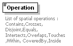 | source | <xs:element name="Operation" maxOccurs="unbounded"> <xs:annotation> <xs:documentation>List of spatial operations : Contains,Crosses, Disjoint,Equals, Intersects,Overlaps,Touches,Within, CoveredBy,Inside</xs:documentation> </xs:annotation> <xs:simpleType> <xs:restriction base="xs:string"> <xs:enumeration value="Contains"/> <xs:enumeration value="Crosses"/> <xs:enumeration value="Disjoint"/> <xs:enumeration value="Equals"/> <xs:enumeration value="Intersects"/> <xs:enumeration value="Overlaps"/> <xs:enumeration value="Touches"/> <xs:enumeration value="Within"/> <xs:enumeration value="CoveredBy"/> <xs:enumeration value="Inside"/> <xs:enumeration value="EnvelopeIntersects"/> </xs:restriction> </xs:simpleType> </xs:element> |