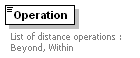 | source | <xs:element name="Distance" minOccurs="0"> <xs:complexType> <xs:sequence> <xs:element name="Operation" maxOccurs="unbounded"> <xs:annotation> <xs:documentation>List of distance operations : Beyond, Within</xs:documentation> </xs:annotation> <xs:simpleType> <xs:restriction base="xs:string"> <xs:enumeration value="Beyond"/> <xs:enumeration value="Within"/> </xs:restriction> </xs:simpleType> </xs:element> </xs:sequence> </xs:complexType> </xs:element> |