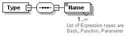 | source | <xs:element name="Type"> <xs:complexType> <xs:sequence> <xs:element name="Name" maxOccurs="unbounded"> <xs:annotation> <xs:documentation>List of Expression types are Basic, Function, Parameter</xs:documentation> </xs:annotation> <xs:simpleType> <xs:restriction base="xs:string"> <xs:enumeration value="Basic"/> <xs:enumeration value="Function"/> <xs:enumeration value="Parameter"/> </xs:restriction> </xs:simpleType> </xs:element> </xs:sequence> </xs:complexType> </xs:element> |