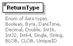 | source | <xs:element name="ReturnType"> <xs:annotation> <xs:documentation>Enum of data types Boolean, Byte, DateTime, Decimal, Double, Int16, Int32, Int64, Single, String, BLOB, CLOB, UniqueID </xs:documentation> </xs:annotation> <xs:simpleType> <xs:restriction base="xs:string"> <xs:enumeration value="Boolean"/> <xs:enumeration value="Byte"/> <xs:enumeration value="DateTime"/> <xs:enumeration value="Decimal"/> <xs:enumeration value="Double"/> <xs:enumeration value="Int16"/> <xs:enumeration value="Int32"/> <xs:enumeration value="Int64"/> <xs:enumeration value="Single"/> <xs:enumeration value="String"/> <xs:enumeration value="BLOB"/> <xs:enumeration value="CLOB"/> <xs:enumeration value="UniqueID"/> </xs:restriction> </xs:simpleType> </xs:element> |
