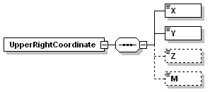 | source | <xs:element name="UpperRightCoordinate"> <xs:complexType> <xs:sequence> <xs:element name="X" type="xs:string"/> <xs:element name="Y" type="xs:string"/> <xs:element name="Z" type="xs:string" minOccurs="0"/> <xs:element name="M" type="xs:string" minOccurs="0"/> </xs:sequence> </xs:complexType> </xs:element> |