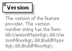 | source | <xs:element name="Version" type="version"> <xs:annotation> <xs:documentation>The version of the feature provider. The version number string has the form <VersionMajor>.<VersionMinor>.<BuildMajor>.<BuildMinor>.</xs:documentation> </xs:annotation> </xs:element> |