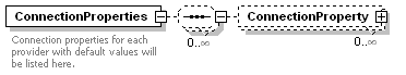 | source | <xs:element name="ConnectionProperties"> <xs:annotation> <xs:documentation>Connection properties for each provider with default values will be listed here.</xs:documentation> </xs:annotation> <xs:complexType> <xs:sequence minOccurs="0" maxOccurs="unbounded"> <xs:element name="ConnectionProperty" minOccurs="0" maxOccurs="unbounded"> <xs:complexType> <xs:sequence> <xs:element name="Name" type="xs:string"> <xs:annotation> <xs:documentation>Name of the property retrieved from Fdo Provider</xs:documentation> </xs:annotation> </xs:element> <xs:element name="LocalizedName" type="xs:string" minOccurs="0"> <xs:annotation> <xs:documentation>Properties can have localized names for displaying them in UI. Provider will inform us what that string should be.</xs:documentation> </xs:annotation> </xs:element> <xs:element name="DefaultValue" type="xs:string" minOccurs="0"> <xs:annotation> <xs:documentation>This is a default value. This will be one of the values listed in Value element</xs:documentation> </xs:annotation> </xs:element> <xs:element name="Value" type="xs:string" minOccurs="0" maxOccurs="unbounded"> <xs:annotation> <xs:documentation>A property can have more than one alternative values to choose from. All possible values will be listed here.</xs:documentation> </xs:annotation> </xs:element> </xs:sequence> <xs:attribute name="Required" type="xs:boolean" use="required"/> <xs:attribute name="Protected" type="xs:boolean" use="required"/> <xs:attribute name="Enumerable" type="xs:boolean" use="required"/> </xs:complexType> </xs:element> </xs:sequence> </xs:complexType> </xs:element> |