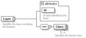 | source | <xs:element name="Layer" maxOccurs="unbounded"> <xs:annotation> <xs:documentation>Specifies the layer containing the features.</xs:documentation> </xs:annotation> <xs:complexType> <xs:sequence> <xs:element name="Class" maxOccurs="unbounded"> <xs:annotation> <xs:documentation>Specifies the feature class.</xs:documentation> </xs:annotation> <xs:complexType> <xs:sequence> <xs:element name="ID" type="xs:string" minOccurs="0" maxOccurs="unbounded"> <xs:annotation> <xs:documentation>An ID associated with a feature. This ID should be unique in the context of the layer and feature class.</xs:documentation> </xs:annotation> </xs:element> </xs:sequence> <xs:attribute name="id" type="xs:string" use="required"> <xs:annotation> <xs:documentation>A string identifying the feature class.</xs:documentation> </xs:annotation> </xs:attribute> </xs:complexType> </xs:element> </xs:sequence> <xs:attribute name="id" type="xs:string" use="required"> <xs:annotation> <xs:documentation>A string identifying the layer.</xs:documentation> </xs:annotation> </xs:attribute> </xs:complexType> </xs:element> |