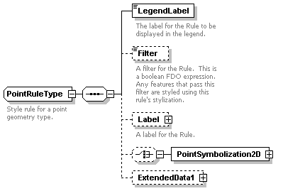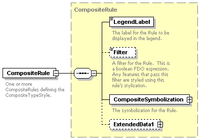 | source | <xs:complexType name="CompositeRule"> <xs:annotation> <xs:documentation>A style rule containing a composite symbolization.</xs:documentation> </xs:annotation> <xs:sequence> <xs:element name="LegendLabel" type="xs:string"> <xs:annotation> <xs:documentation>The label for the Rule to be displayed in the legend.</xs:documentation> </xs:annotation> </xs:element> <xs:element name="Filter" type="xs:string" minOccurs="0"> <xs:annotation> <xs:documentation>A filter for the Rule. This is a boolean FDO expression. Any features that pass this filter are styled using this rule's stylization.</xs:documentation> </xs:annotation> </xs:element> <xs:element name="CompositeSymbolization" type="CompositeSymbolization"> <xs:annotation> <xs:documentation>The symbolization for the Rule.</xs:documentation> </xs:annotation> </xs:element> <xs:element name="ExtendedData1" type="ExtendedDataType" minOccurs="0"/> </xs:sequence> </xs:complexType> |