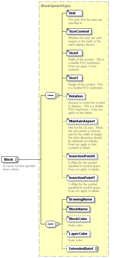| source | <xs:complexType name="BlockSymbolType"> <xs:annotation> <xs:documentation>A block symbol.</xs:documentation> </xs:annotation> <xs:complexContent> <xs:extension base="SymbolType"> <xs:sequence> <xs:element name="DrawingName" type="xs:string"/> <xs:element name="BlockName" type="xs:string"/> <xs:element name="BlockColor" type="xs:string" minOccurs="0"> <xs:annotation> <xs:documentation>Static color.</xs:documentation> </xs:annotation> </xs:element> <xs:element name="LayerColor" type="xs:string" minOccurs="0"> <xs:annotation> <xs:documentation>Static color.</xs:documentation> </xs:annotation> </xs:element> <xs:element name="ExtendedData1" type="ExtendedDataType" minOccurs="0"/> </xs:sequence> </xs:extension> </xs:complexContent> </xs:complexType> |