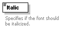 | source | <xs:element name="Italic" type="xs:string" default="false" minOccurs="0"> <xs:annotation> <xs:documentation>Specifies if the text should be drawn using an italic font. This must evaluate to True or False (default).</xs:documentation> </xs:annotation> </xs:element> |