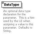 | source | <xs:element name="DataType" type="DataType" default="String" minOccurs="0"> <xs:annotation> <xs:documentation>An optional data type declaration for the parameter. This is a hint used by the UI when assigning a value to this parameter. Defaults to String.</xs:documentation> </xs:annotation> </xs:element> |