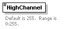 | source | <xs:element name="HighChannel" type="xs:unsignedByte" minOccurs="0"> <xs:annotation> <xs:documentation>Default is 255. Range is 0:255.</xs:documentation> </xs:annotation> </xs:element> |