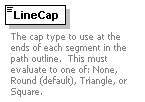 | source | <xs:element name="LineCap" type="xs:string" default="'Round'" minOccurs="0"> <xs:annotation> <xs:documentation>The cap type to use at the ends of each segment in the path outline. This must evaluate to one of: None, Round (default), Triangle, or Square.</xs:documentation> </xs:annotation> </xs:element> |