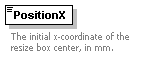 | source | <xs:element name="PositionX" type="xs:string" default="0.0"> <xs:annotation> <xs:documentation>The initial x-coordinate of the resize box center, in mm.</xs:documentation> </xs:annotation> </xs:element> |