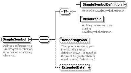 | source | <xs:complexType name="SimpleSymbol"> <xs:annotation> <xs:documentation>Defines a reference to a SimpleSymbolDefinition, either inlined or a library reference.</xs:documentation> </xs:annotation> <xs:sequence> <xs:choice> <xs:element name="SimpleSymbolDefinition" type="SimpleSymbolDefinition"> <xs:annotation> <xs:documentation>An inlined SimpleSymbolDefinition.</xs:documentation> </xs:annotation> </xs:element> <xs:element name="ResourceId" type="xs:string"> <xs:annotation> <xs:documentation>A library reference to an existing SimpleSymbolDefinition.</xs:documentation> </xs:annotation> </xs:element> </xs:choice> <xs:element name="RenderingPass" type="xs:string" default="0" minOccurs="0"> <xs:annotation> <xs:documentation>The optional rendering pass in which this symbol definition draws. If specified this must be greater than or equal to zero. Defaults to 0.</xs:documentation> </xs:annotation> </xs:element> <xs:element name="ExtendedData1" type="ExtendedDataType" minOccurs="0"/> </xs:sequence> </xs:complexType> |