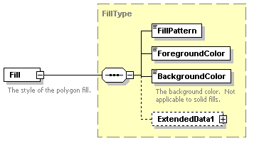 | source | <xs:complexType name="FillType"> <xs:annotation> <xs:documentation>Encapsulates the stylization of a polygon's fill.</xs:documentation> </xs:annotation> <xs:sequence> <xs:element name="FillPattern" type="xs:string"/> <xs:element name="ForegroundColor" type="xs:string"/> <xs:element name="BackgroundColor" type="xs:string"> <xs:annotation> <xs:documentation>The background color. Not applicable to solid fills.</xs:documentation> </xs:annotation> </xs:element> <xs:element name="ExtendedData1" type="ExtendedDataType" minOccurs="0"/> </xs:sequence> </xs:complexType> |