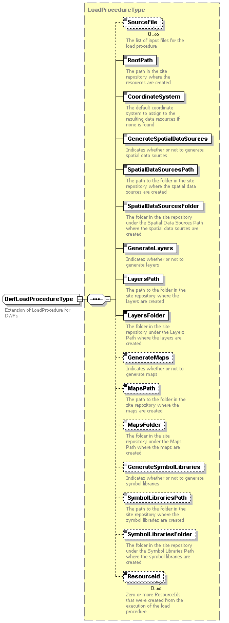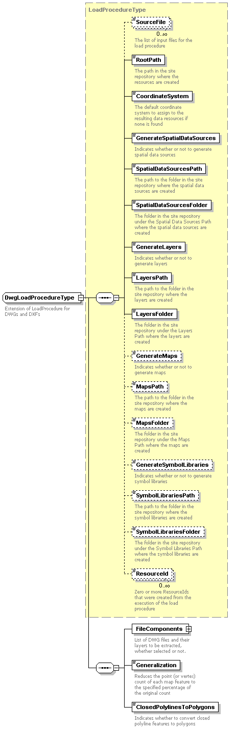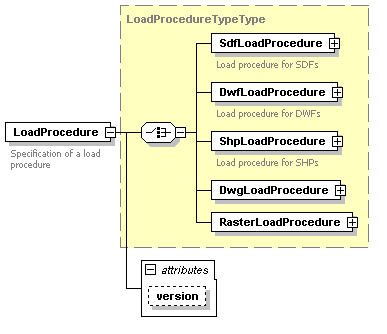| source | <xs:complexType name="LoadProcedureTypeType"> <xs:annotation> <xs:documentation>Specification of a load procedure</xs:documentation> </xs:annotation> <xs:choice> <xs:element name="SdfLoadProcedure" type="SdfLoadProcedureType"> <xs:annotation> <xs:documentation>Load procedure for SDFs</xs:documentation> </xs:annotation> </xs:element> <xs:element name="DwfLoadProcedure" type="DwfLoadProcedureType"> <xs:annotation> <xs:documentation>Load procedure for DWFs</xs:documentation> </xs:annotation> </xs:element> <xs:element name="ShpLoadProcedure" type="ShpLoadProcedureType"> <xs:annotation> <xs:documentation>Load procedure for SHPs</xs:documentation> </xs:annotation> </xs:element> <xs:element name="DwgLoadProcedure" type="DwgLoadProcedureType"/> <xs:element name="RasterLoadProcedure" type="RasterLoadProcedureType"/> </xs:choice> </xs:complexType> |