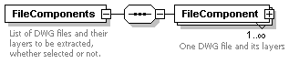 | source | <xs:element name="FileComponent" type="DwgFileComponentType" maxOccurs="unbounded"> <xs:annotation> <xs:documentation>One DWG file and its layers</xs:documentation> </xs:annotation> </xs:element> |