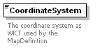 | source | <xs:element name="CoordinateSystem" type="xs:string"> <xs:annotation> <xs:documentation>The coordinate system as WKT used by the MapDefinition</xs:documentation> </xs:annotation> </xs:element> |