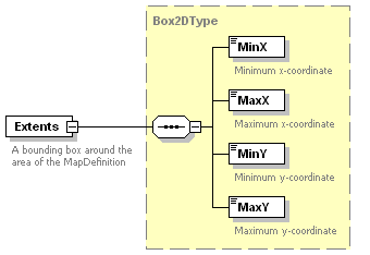 | source | <xs:element name="Extents" type="Box2DType"> <xs:annotation> <xs:documentation>A bounding box around the area of the MapDefinition</xs:documentation> </xs:annotation> </xs:element> |