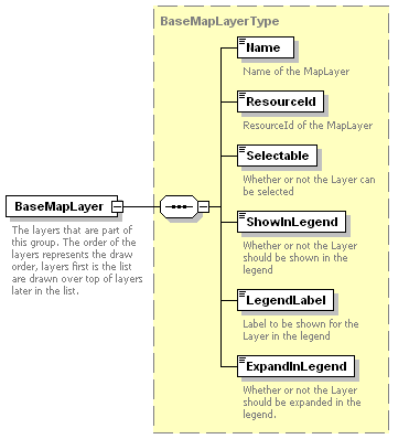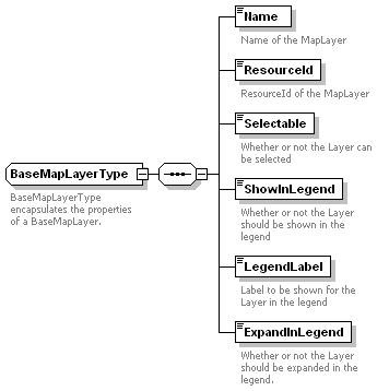 | source | <xs:complexType name="BaseMapLayerType"> <xs:annotation> <xs:documentation>BaseMapLayerType encapsulates the properties of a BaseMapLayer.</xs:documentation> </xs:annotation> <xs:sequence> <xs:element name="Name" type="xs:string"> <xs:annotation> <xs:documentation>Name of the MapLayer</xs:documentation> </xs:annotation> </xs:element> <xs:element name="ResourceId" type="xs:string"> <xs:annotation> <xs:documentation>ResourceId of the MapLayer</xs:documentation> </xs:annotation> </xs:element> <xs:element name="Selectable" type="xs:boolean"> <xs:annotation> <xs:documentation>Whether or not the Layer can be selected</xs:documentation> </xs:annotation> </xs:element> <xs:element name="ShowInLegend" type="xs:boolean"> <xs:annotation> <xs:documentation>Whether or not the Layer should be shown in the legend</xs:documentation> </xs:annotation> </xs:element> <xs:element name="LegendLabel" type="xs:string"> <xs:annotation> <xs:documentation>Label to be shown for the Layer in the legend</xs:documentation> </xs:annotation> </xs:element> <xs:element name="ExpandInLegend" type="xs:boolean"> <xs:annotation> <xs:documentation>Whether or not the Layer should be expanded in the legend.</xs:documentation> </xs:annotation> </xs:element> </xs:sequence> </xs:complexType> |