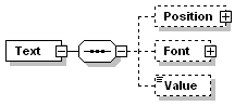 | source | <xs:element name="Text" minOccurs="0" maxOccurs="unbounded"> <xs:complexType> <xs:sequence> <xs:element name="Position" minOccurs="0"> <xs:complexType> <xs:sequence> <xs:element name="Left" type="xs:float"/> <xs:element name="Bottom" type="xs:float"/> <xs:element name="Units" type="xs:string"/> </xs:sequence> </xs:complexType> </xs:element> <xs:element name="Font" minOccurs="0"> <xs:complexType> <xs:sequence> <xs:element name="Name" type="xs:string"/> <xs:element name="Height" type="xs:float"/> <xs:element name="Units" type="xs:string"/> </xs:sequence> </xs:complexType> </xs:element> <xs:element name="Value" type="xs:string" minOccurs="0"/> </xs:sequence> </xs:complexType> </xs:element> |