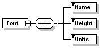 | source | <xs:element name="Font" minOccurs="0"> <xs:complexType> <xs:sequence> <xs:element name="Name" type="xs:string"/> <xs:element name="Height" type="xs:float"/> <xs:element name="Units" type="xs:string"/> </xs:sequence> </xs:complexType> </xs:element> |