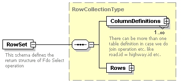 | source | <xs:element name="RowSet" type="RowCollectionType"> <xs:annotation> <xs:documentation>This schema defines the return structure of Fdo Select operation</xs:documentation> </xs:annotation> </xs:element> |