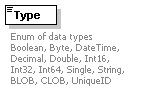 | source | <xs:element name="Type"> <xs:annotation> <xs:documentation>Enum of data types Boolean, Byte, DateTime, Decimal, Double, Int16, Int32, Int64, Single, String, BLOB, CLOB, UniqueID </xs:documentation> </xs:annotation> <xs:simpleType> <xs:restriction base="xs:string"> <xs:enumeration value="boolean"/> <xs:enumeration value="byte"/> <xs:enumeration value="datetime"/> <xs:enumeration value="decimal"/> <xs:enumeration value="double"/> <xs:enumeration value="int16"/> <xs:enumeration value="int32"/> <xs:enumeration value="int64"/> <xs:enumeration value="single"/> <xs:enumeration value="string"/> <xs:enumeration value="blob"/> <xs:enumeration value="clob"/> <xs:enumeration value="uniqueId"/> </xs:restriction> </xs:simpleType> </xs:element> |