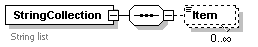 | source | <xs:element name="StringCollection"> <xs:annotation> <xs:documentation>String list</xs:documentation> </xs:annotation> <xs:complexType> <xs:sequence> <xs:element name="Item" type="xs:string" minOccurs="0" maxOccurs="unbounded"/> </xs:sequence> </xs:complexType> </xs:element> |