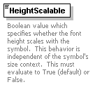 | source | <xs:element name="HeightScalable" type="xs:string" default="true" minOccurs="0"> <xs:annotation> <xs:documentation>Boolean value which specifies whether the font height scales with the symbol. This behavior is independent of the symbol's size context. This must evaluate to True (default) or False.</xs:documentation> </xs:annotation> </xs:element> |