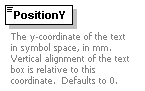 | source | <xs:element name="PositionY" type="xs:string" default="0.0" minOccurs="0"> <xs:annotation> <xs:documentation>The y-coordinate of the text in symbol space, in mm. Vertical alignment of the text box is relative to this coordinate. Defaults to 0.</xs:documentation> </xs:annotation> </xs:element> |
