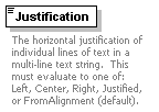 | source | <xs:element name="Justification" type="xs:string" default="'FromAlignment'" minOccurs="0"> <xs:annotation> <xs:documentation>The horizontal justification of individual lines of text in a multi-line text string. This must evaluate to one of: Left, Center, Right, Justified, or FromAlignment (default).</xs:documentation> </xs:annotation> </xs:element> |