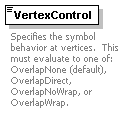 | source | <xs:element name="VertexControl" type="xs:string" default="'OverlapNone'" minOccurs="0"> <xs:annotation> <xs:documentation>Specifies the symbol behavior at vertices. This must evaluate to one of: OverlapNone (default), OverlapDirect, OverlapNoWrap, or OverlapWrap.</xs:documentation> </xs:annotation> </xs:element> |