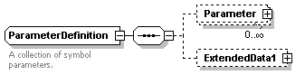 | source | <xs:complexType name="ParameterDefinition"> <xs:annotation> <xs:documentation>A collection of symbol parameters.</xs:documentation> </xs:annotation> <xs:sequence> <xs:element name="Parameter" type="Parameter" minOccurs="0" maxOccurs="unbounded"/> <xs:element name="ExtendedData1" type="ExtendedDataType" minOccurs="0"/> </xs:sequence> </xs:complexType> |