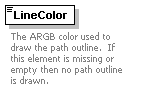 | source | <xs:element name="LineColor" type="xs:string" minOccurs="0"> <xs:annotation> <xs:documentation>The ARGB color used to draw the path outline. If this element is missing or empty then no path outline is drawn.</xs:documentation> </xs:annotation> </xs:element> |