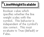 | source | <xs:element name="LineWeightScalable" type="xs:string" default="true" minOccurs="0"> <xs:annotation> <xs:documentation>Boolean value which specifies whether the line weight scales with the symbol. This behavior is independent of the symbol's size context. This must evaluate to True (default) or False.</xs:documentation> </xs:annotation> </xs:element> |