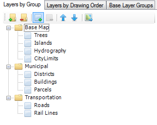 The Layers by Group tab allows you to organise the layers in your Map Definition logically into groups