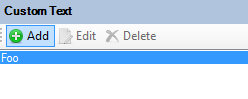 The Custom Text section of the editor allows you to configure the text labels which will be in this Print Layout