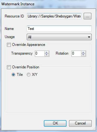 Each Watermark instance you add can have its appearance and/or positioning settings be overridden with values specific for this layer or map.